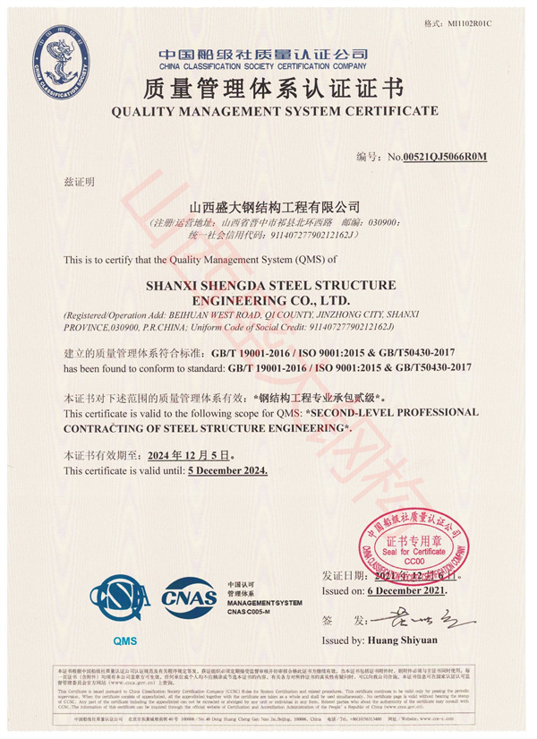 • GB/T19001-2016/ISO9001:2025&GB/T5040-2017質(zhì)量管理體系認(rèn)證,山西省鋼結(jié)構(gòu)行業(yè)發(fā)展研討會(huì)協(xié)辦單位,盛大鋼構(gòu)一直致力于行業(yè)新技術(shù)的研究和推廣,已獲得實(shí)用新型專利證書(shū)一種Z型鋼的節(jié)能型熱軋成型裝置,實(shí)用新型專利證書(shū)一種糾偏彩涂板卷板機(jī), 一種復(fù)合板企口矯正正形裝置