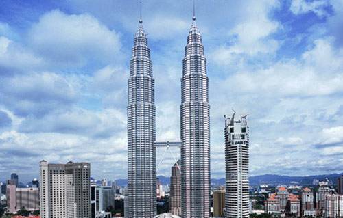 1996年建成的高450m的馬來(lái)西亞雙塔石油大廈;